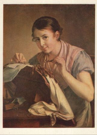 Gemälde - schneidernde Frau