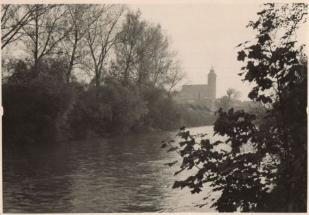 Titel: unbekannter Ort - Kirche und Fluss