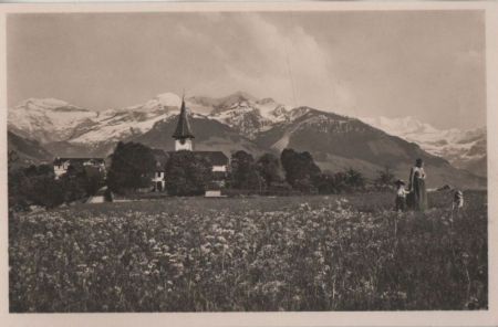 Schweiz - Aeschi - Kirche und Alpen - ca. 1950