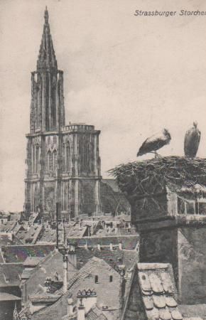 Titel: Elsass - Storchennest in Strassburg - ca. 1935