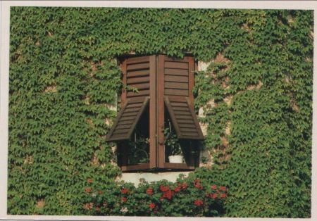 Titel: Fenster laubumrankt