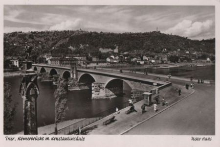 Titel: Trier - Römerbrücke mit Konstantinsäule - 1954